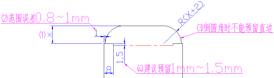 5 | 纸盒大折页插舌两端倒角半径等于插舌宽度加2mm,制作后倒角不留直边 | 图3 |