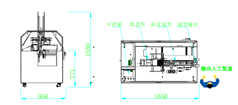 人工放盒至纸盒库--设备完成单个取盒--纸盒自动成型--折页成型--成品输出设备--完成